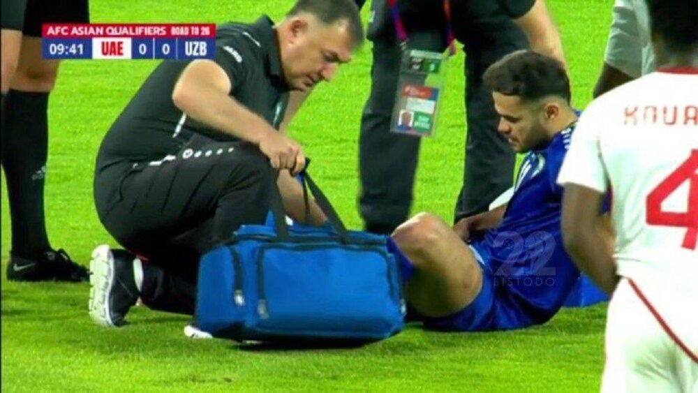 دکتر فرید زرینه در ارتباط با این موضوع اعلام کرد: بررسی‌های پاراکلینیکی با پیگیری کادر پزشکی تیم ملی ازبکستان انجام شده است و آنها به ما اطلاع دادند؛ بازیکن با آسیب درجه ۲ رو به رو است. برای چنین موردی دوره درمان، فیزیوتراپی و بازیابی ۴ تا ۶ هفته‌ای در نظر گرفته می‌شود. البته پس از بازگشت بازیکن، باید شرایط او را از نزدیک بررسی کنیم. در حال حاضر با طرف ازبکستانی هم در ارتباط هستیم.