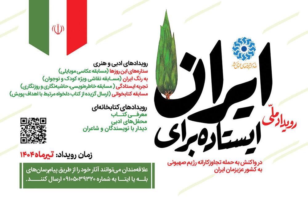 بر همین اساس و در راستای اجرای پویش ملی «ایستاده برای ایران»، کتابخانههای عمومی کشور مجموعهای از رویدادهای فرهنگی، ادبی و هنری را نیز اجرا میکنند.