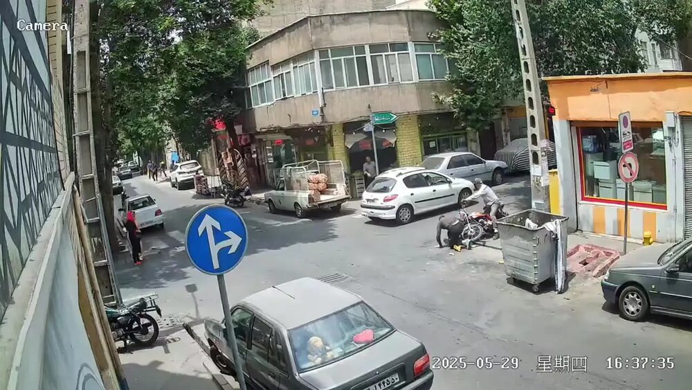 لحظه تصادف هولناک یک موتور با پژو ۲۰۶ در تهران + فیلم