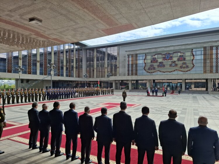 به گزارش سلام نو، رئیس جمهور کشورمان که به دعوت رئیس جمهور بلاروس و به منظور سفری رسمی به این کشور سفر کرده است، صبح امروز چهارشنبه ۲۹ مرداد، در محل کاخ ریاست جمهوری، از سوی آقای الکساندر لوکاشنکو، رئیس جمهور بلاروس مورد استقبال رسمی قرار گرفت.