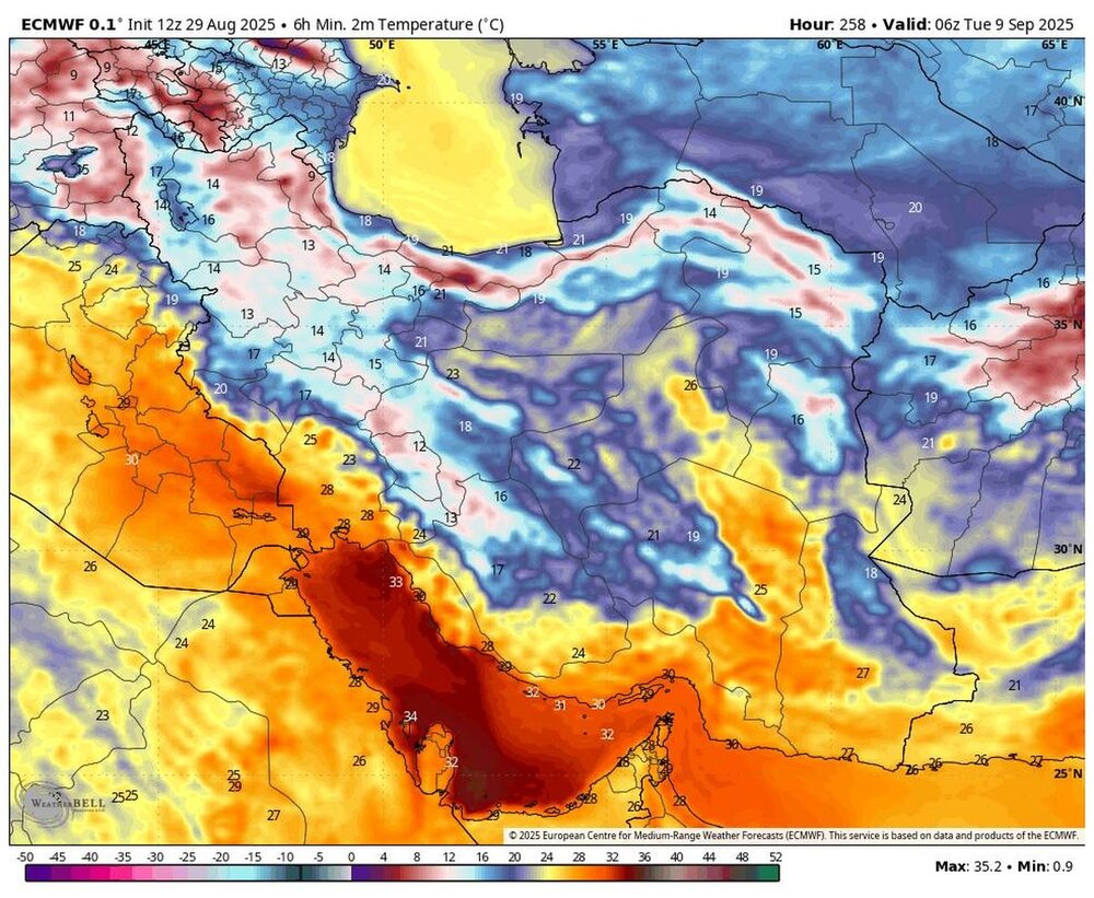 بسیاری از نقاط سردسیر کشور پس از وقوع این کاهش دما شاهد دماهای کمینه حوالی ۱۰ درجه خواهند بود که شبهای بسیار خنکی را رقم خواهد زد.