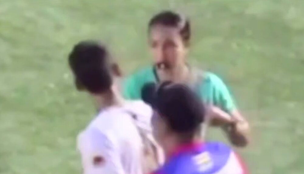 لحظه درگیری و سیلی زدن بازیکن اخراجی مرد به داور زن + فیلم
