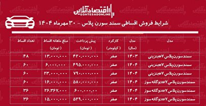 در نهایت، گرانترین نسخه این طرح، سمند سورن پلاس EF7 دوگانهسوز مدل ۱۴۰۴ است که با پیشپرداخت ۶۰۰ میلیون تومان و اقساط ماهانه ۲۶ میلیون و ۳۰۰ هزار تومانی در ۳۶ قسط ارائه میشود؛ مدلی که با کوتاهترین بازپرداخت، هزینه نهایی کمتری برای خریدار دارد.