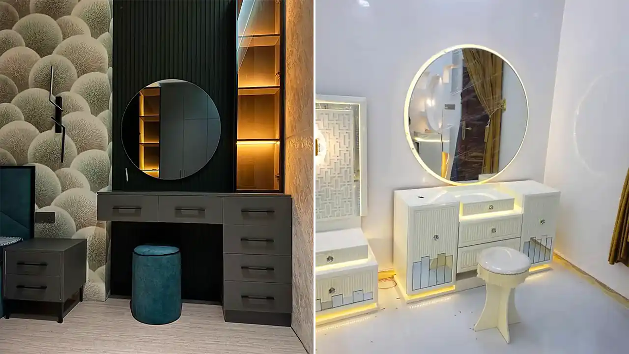 میز آرایشی دخترانه زیبا؛ ۱۵ مدل آینه نورانی مدرن برای اتاق خواب شیک